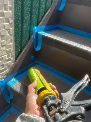 今回は階段のシーリング打設を行って全ての施工が終了です。